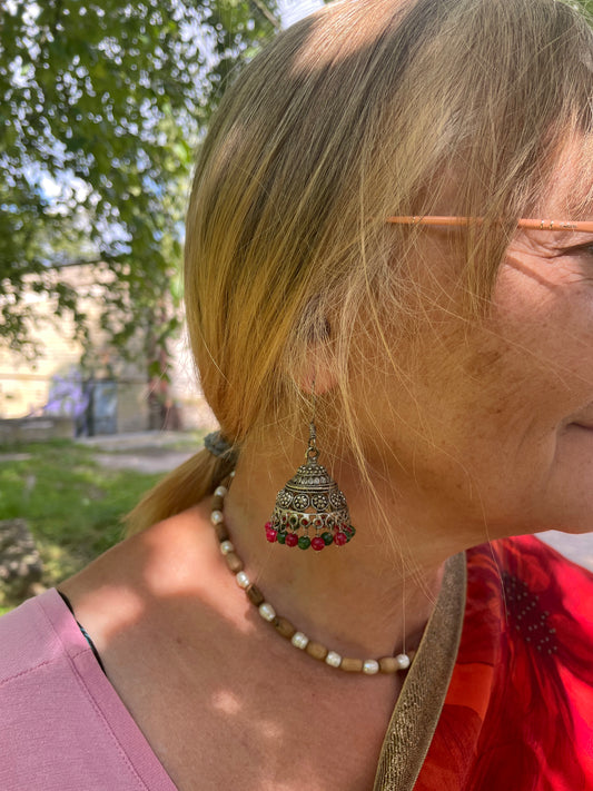 Jhumka auskarai - varpelio formos auskarai