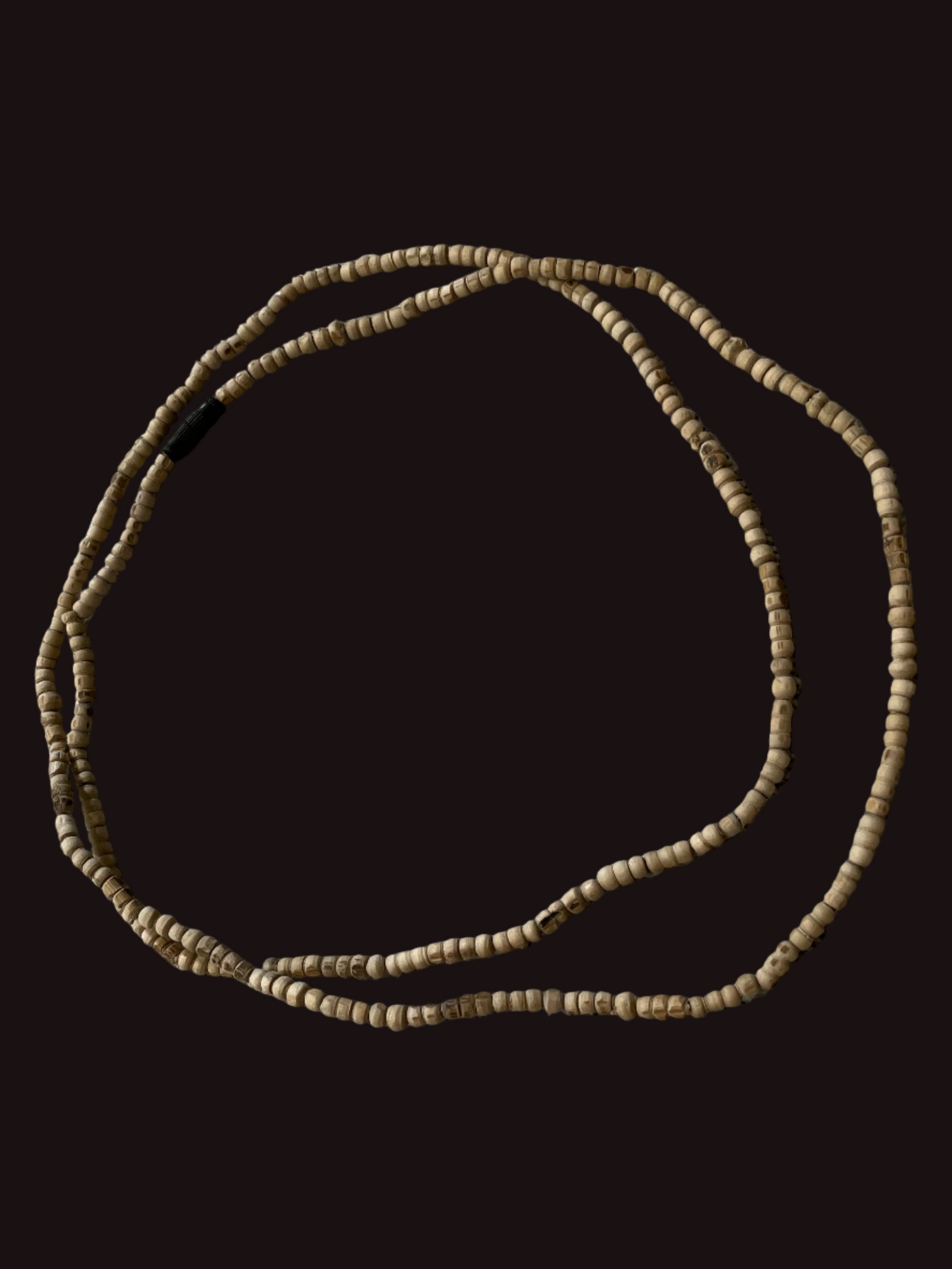 Medžiaga ir reikšmė: Karoliukai gaminami iš šventojo baziliko (Ocimum tenuiflorum) medienos, kuris induizme yra labai garbinamas kaip Tulasi Devi – viena artimiausių Krišnos tarnaičių. Nešiojimas simbolizuoja pasidavimą Viešpačiui Krišnai, tyrumą ir dvasinį ryšį.