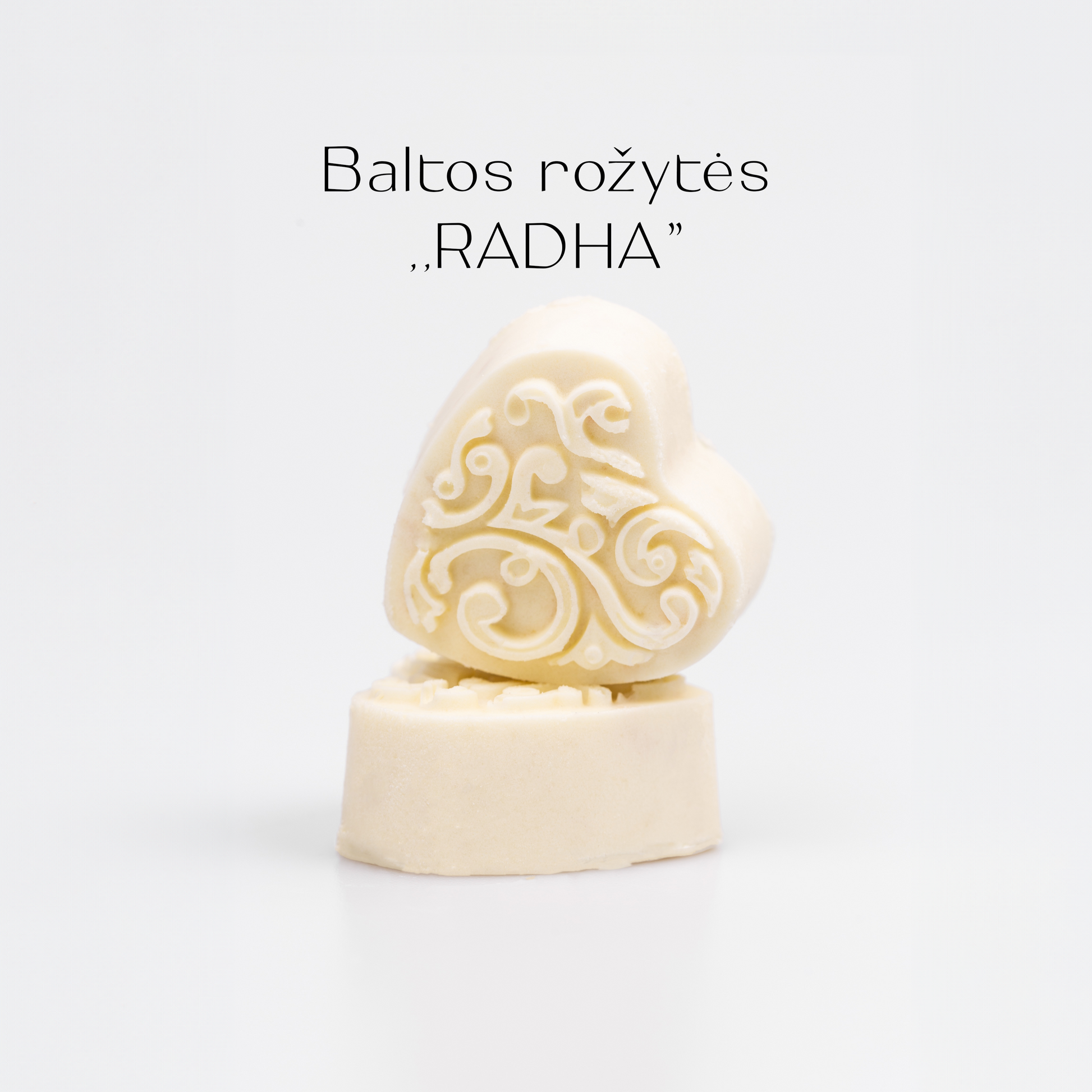 “RADHA” sudėtis: kakavos sviestas, nugriebto pieno milteliai, cukraus pudra, lazdynų riešutai, vanilės kvapioji medžiaga, emulsiklis: sojų lecitinas.