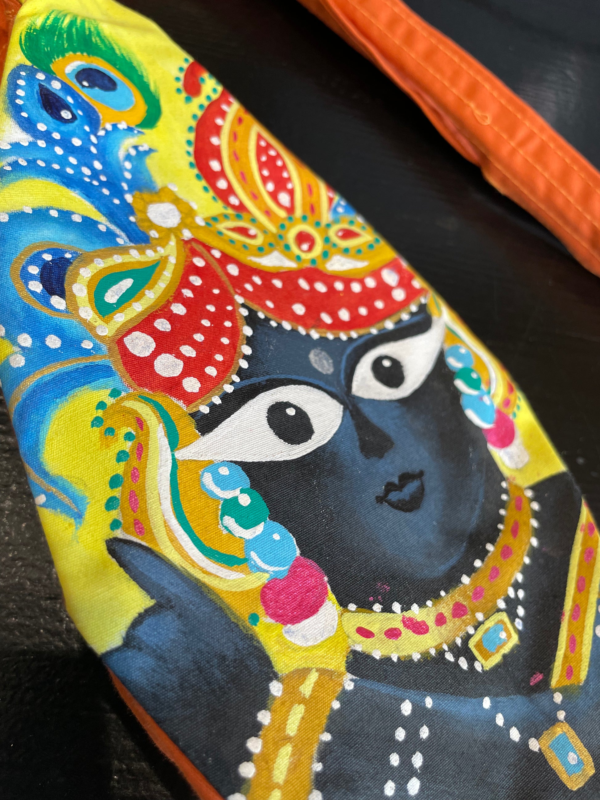 Maldos karoliukų maišelis ,,Radha Raman", rankų darbo piešiniu