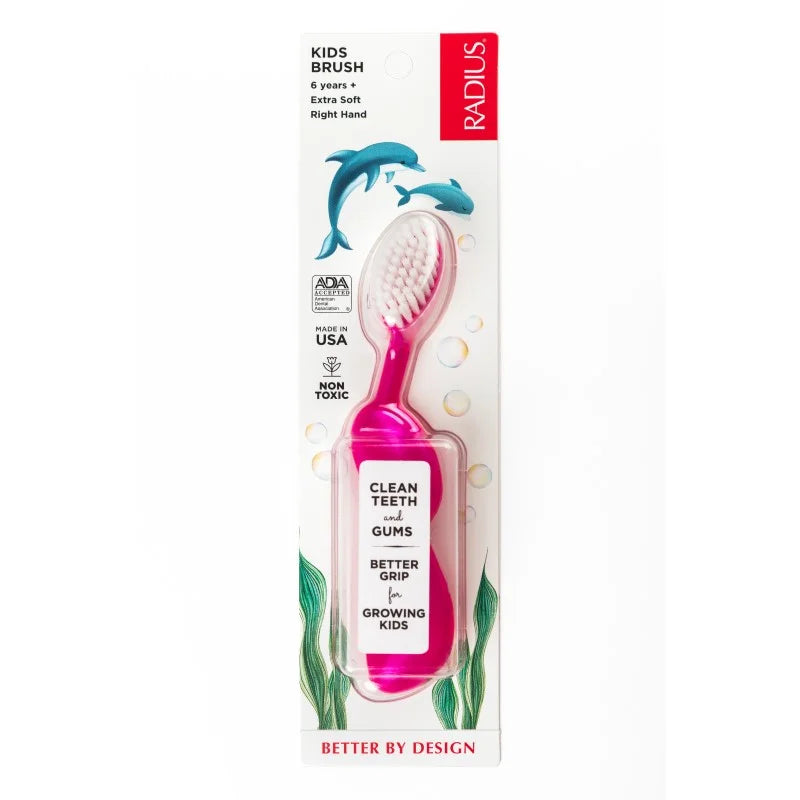 Зубная щётка Radius Kidz предназначена для детей школьного возраста от 6 лет и старше. Зубная щётка Kidz изготовлена из натуральных материалов без использования нефтепродуктов. Все материалы, из которых изготовлена щётка, одобрены Управлением по санитарному надзору за качеством пищевых продуктов и медикаментов США (FDA). Благодаря удобной ручке и наклонённой под углом 45 градусов головке зубная щётка формирует навыки правильного удержания зубной щётки. Даже при небрежной чистке зубов с помощью Radius Kidz достигаются отличные результаты.